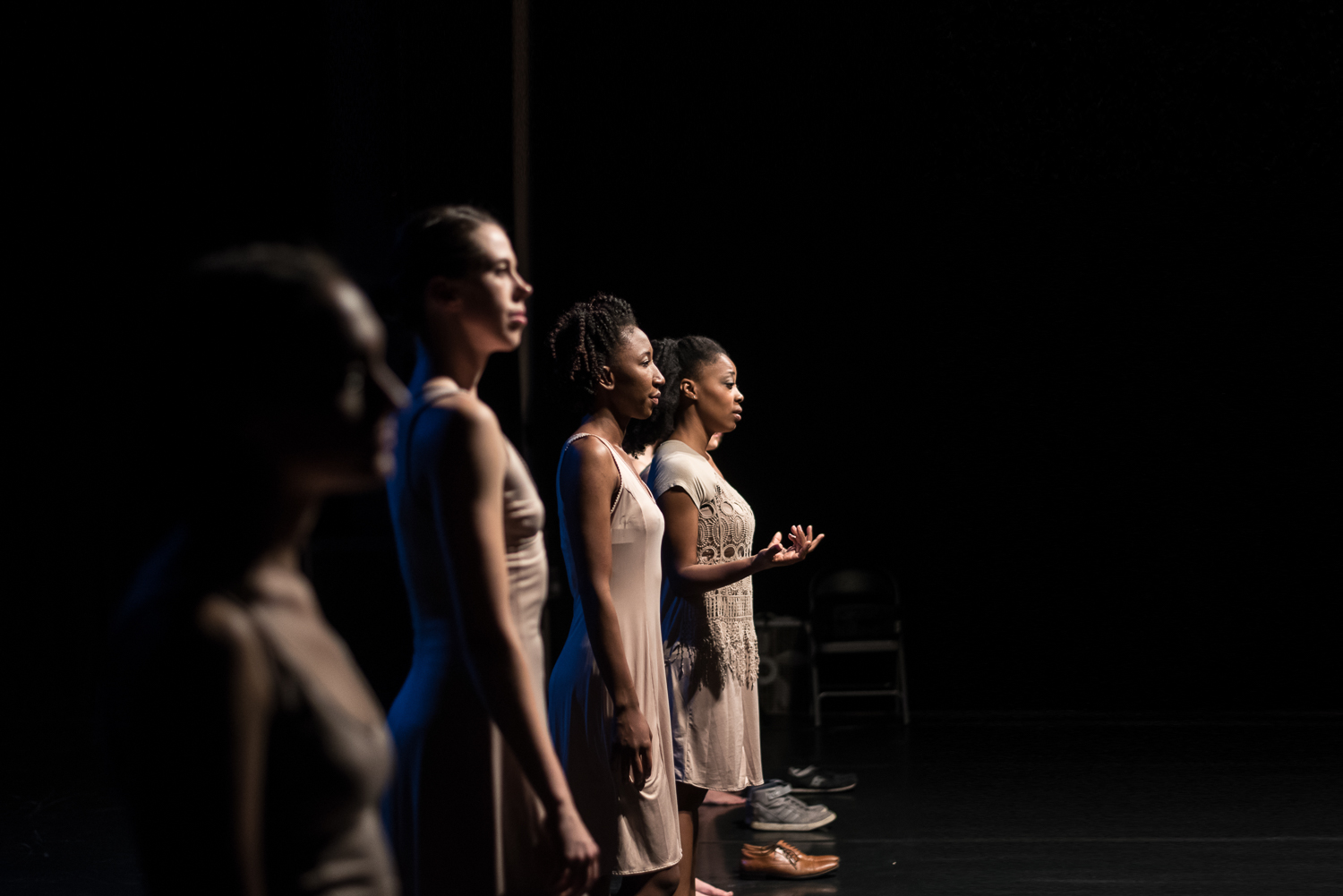 To open Part 2 of ‘Imprint’, soft, warm lights surrounded Jazelle Morris on an empty stage as she sang an a capella rendition of “So… That’s Love”. I closed my eyes for a brief moment to listen to her sweet, intimate song, and it felt as though I could see Jazelle sitting by her bedroom window at twilight, singing a lullaby to a distant loved one. Her song was framed by vignettes of individual dancers – first was Co-Artistic Director Ericka Vaughn, who walked into the center stage pool of light to a pair of white ballet-style flats. Every so simply, she slipped on her shoes, sat cross-legged in the pool of light, closed her eyes, and took a few deep breaths. Almost instantly, I had a memory of my own mother, taking a moment to herself between raising myself and three siblings, taking those same, exhausted breaths.